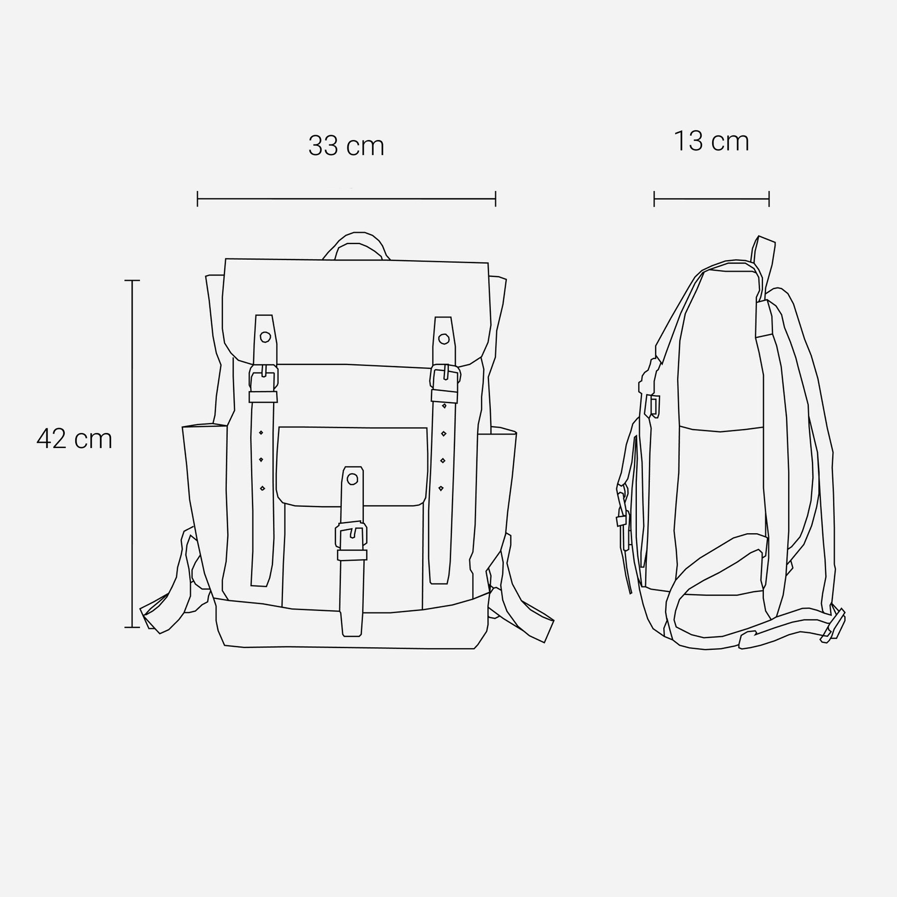 • Vordertasche mit Schnallenverschluss: Geräumige Fronttasche mit robustem Lederriemen und Magnetverschluss für schnellen Zugriff und Sicherheit.